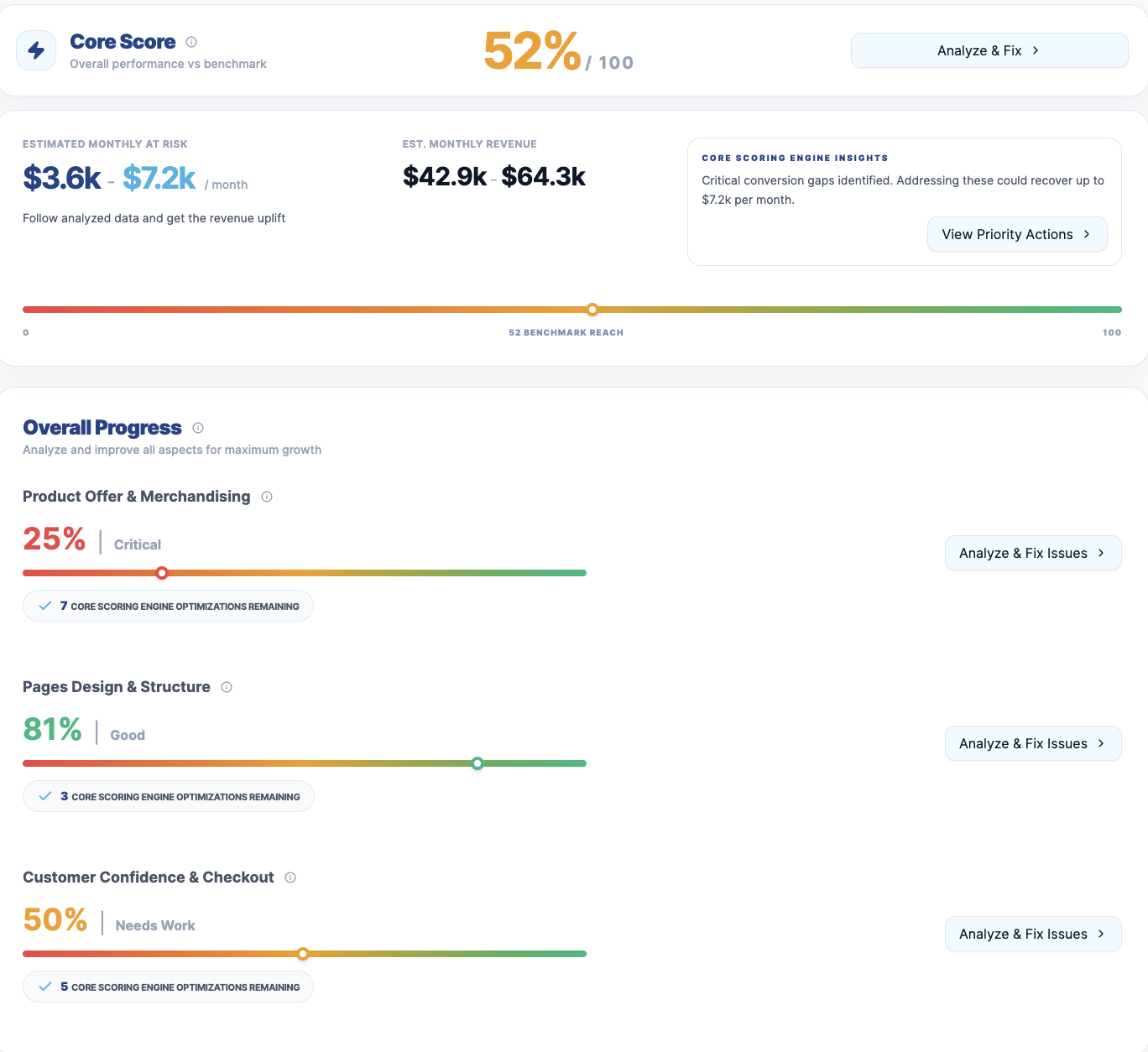 Scored so you know exactly which ones are underperforming, why it's happening, and what to fix first.